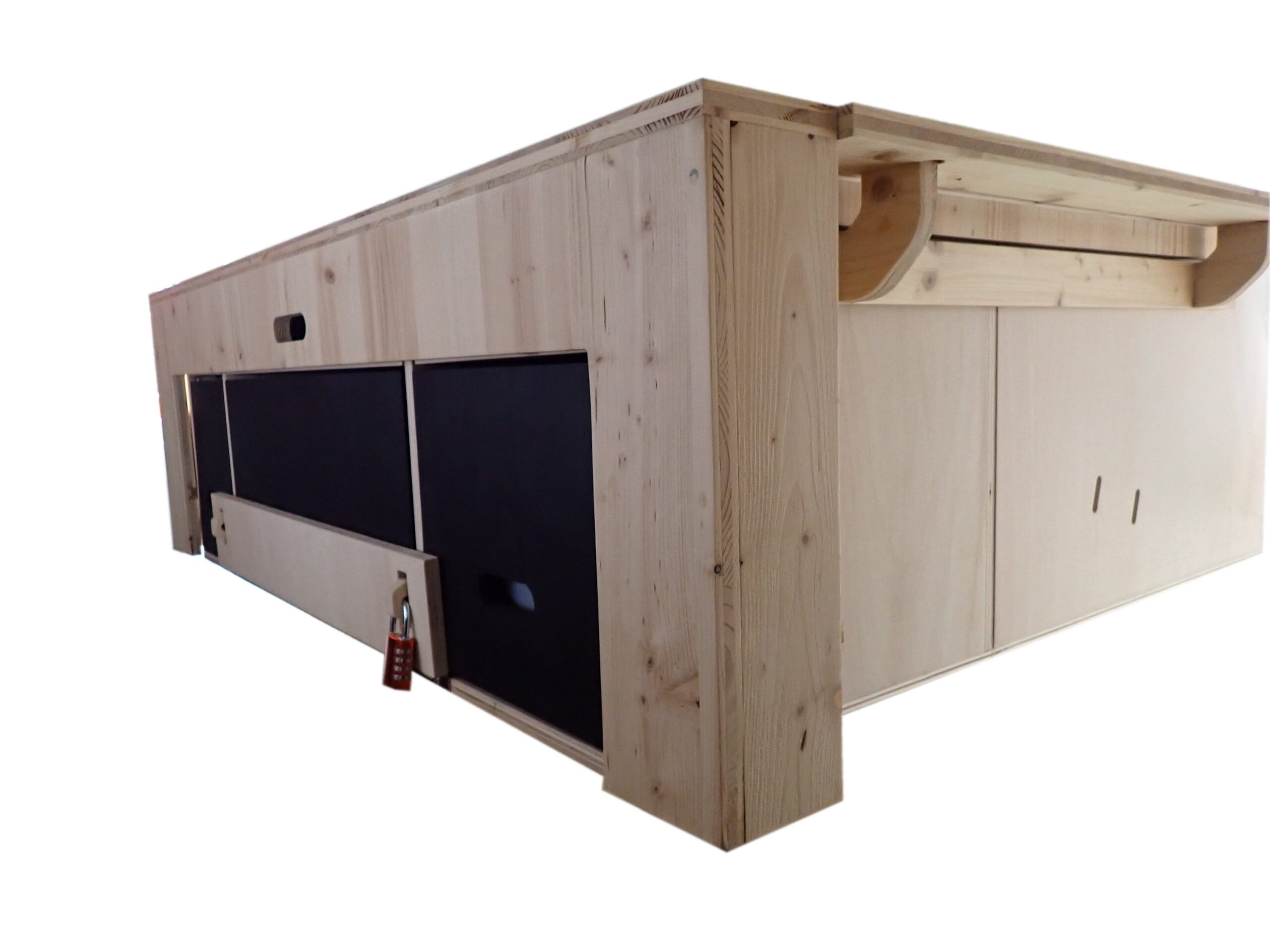 ► Verrouillage des tiroirs. Cette fonction vous permet de laisser votre véhicule ouvert et de protéger le contenu de votre box contre le vol en verrouillant l’ensemble de vos tiroirs à l’aide de cadenas (fournis)